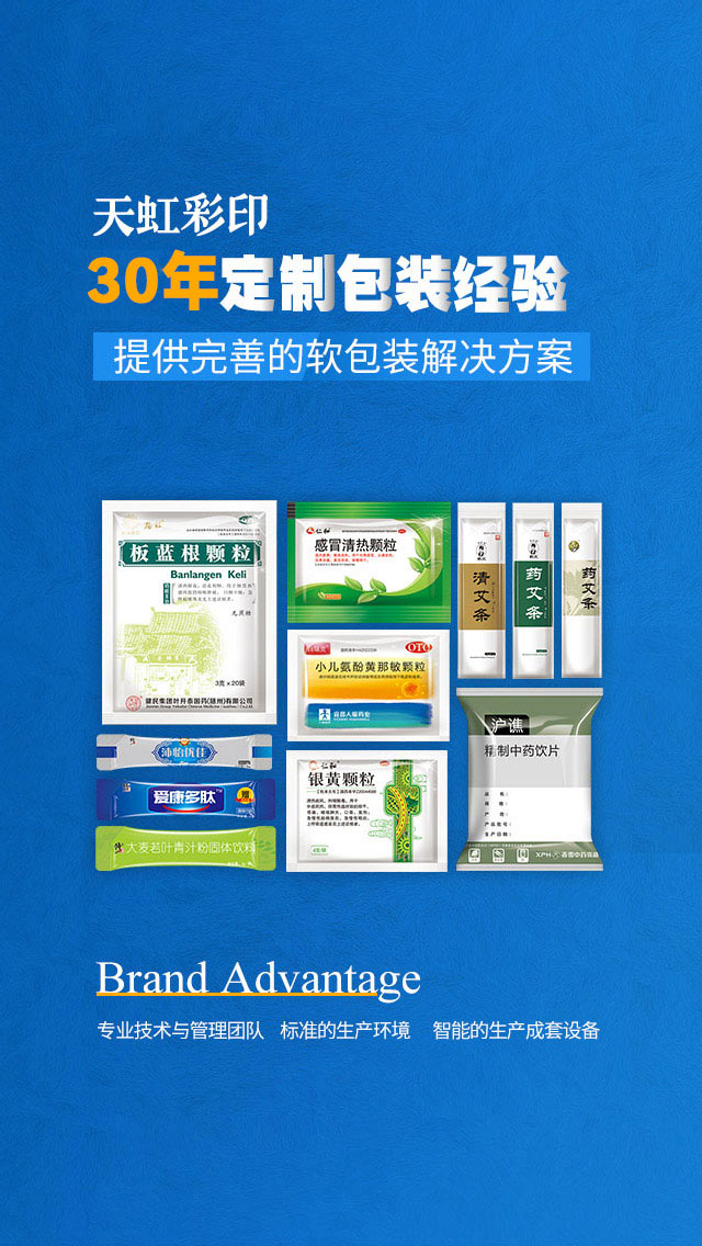 武漢市天虹紙塑彩印有限公司成立于1994年8月18日,是一家集設(shè)計,印刷,制作于一體的塑料軟包裝高新技術(shù)企業(yè),公司坐落于武漢市蔡甸經(jīng)濟(jì)開發(fā)區(qū),占地面積33000平方米。公司總投資1.5億元,新建了高于國家D級標(biāo)準(zhǔn)的無菌車間,并在國家藥品監(jiān)督管理局注冊登記了12個不同材質(zhì)結(jié)構(gòu)的藥包材生產(chǎn)許可證...