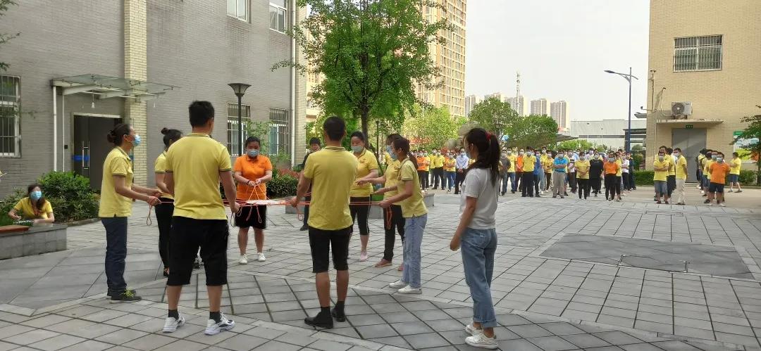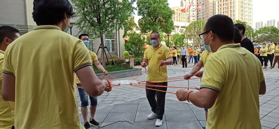 《動(dòng)感擊球》拓展活動(dòng),是團(tuán)隊(duì)所有的隊(duì)員分散在鼓的四周,每個(gè)人握住自己的繩子,在教練的口令下一起用鼓連續(xù)顛動(dòng)一個(gè)網(wǎng)球,挑戰(zhàn)在規(guī)定時(shí)間內(nèi)連續(xù)顛動(dòng)的次數(shù),目的是提高團(tuán)隊(duì)成員協(xié)作能力,增強(qiáng)團(tuán)隊(duì)的向心力,優(yōu)化團(tuán)隊(duì)工作流程,找準(zhǔn)團(tuán)隊(duì)角色定位,提升執(zhí)行力和目標(biāo)管理能力。拓展活動(dòng)由印刷、復(fù)合,制袋、物控、品控等7個(gè)小組參加角逐。