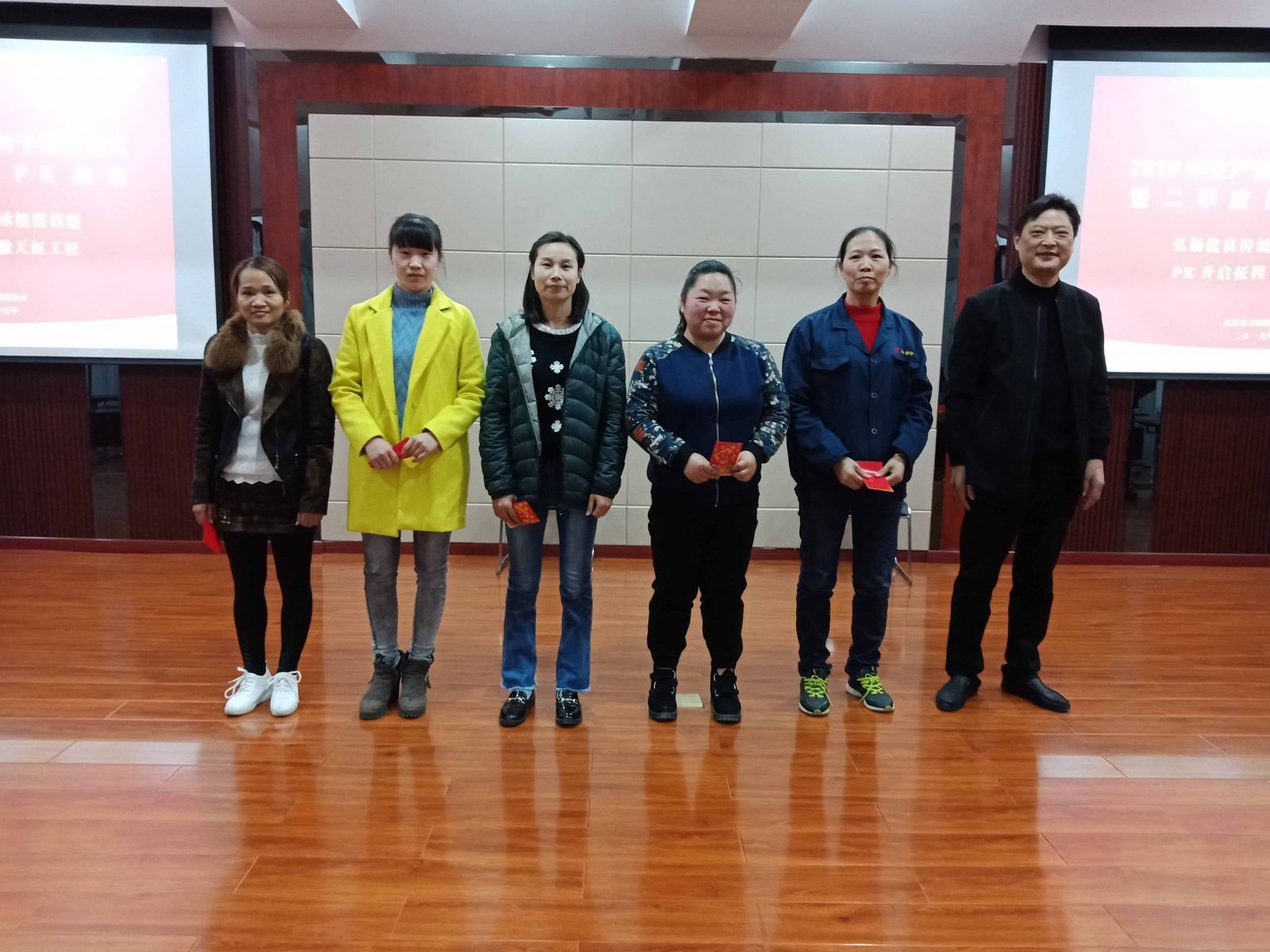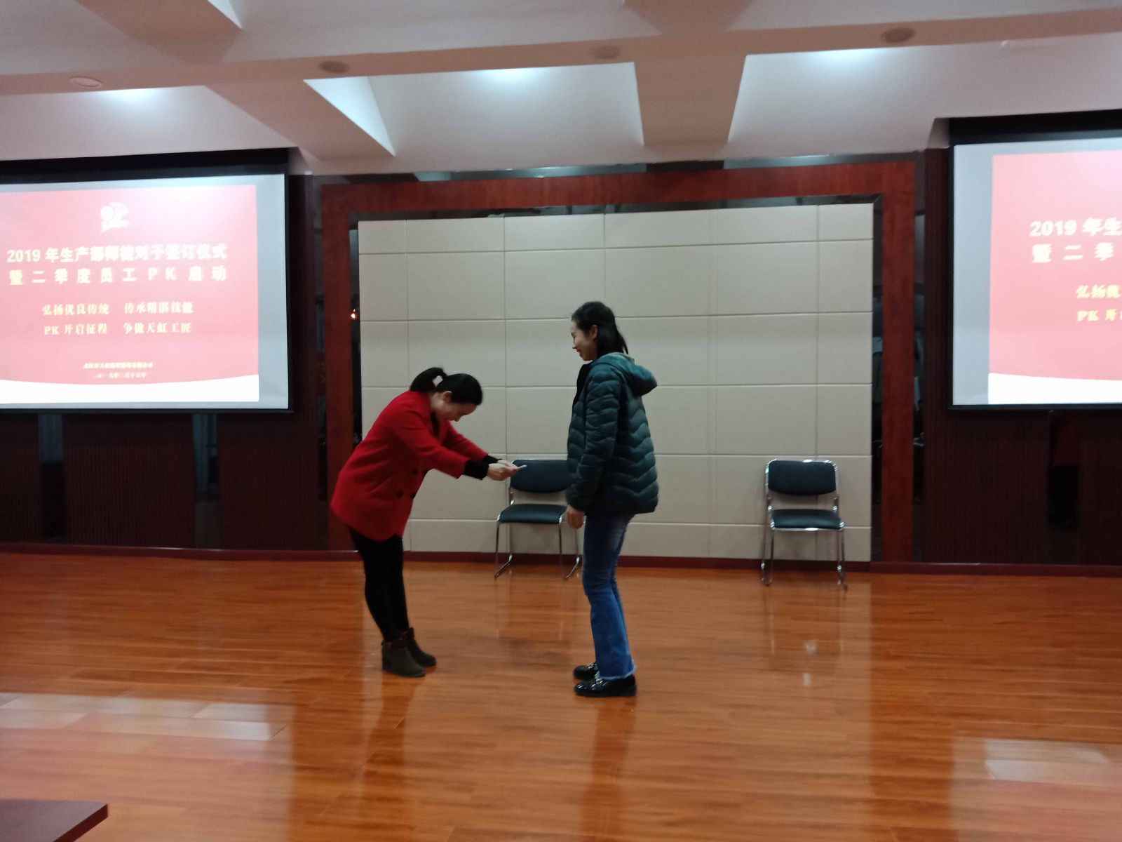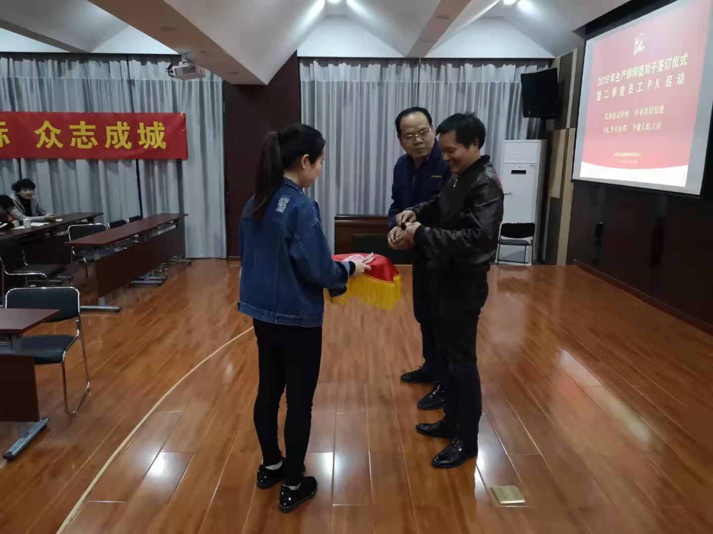 拜師的香茶仍溫,莊嚴的承諾余音繞梁,主持人緊接著又宣布2018年第四季度員工PK兌現(xiàn)和2019年第二季度員工PK啟動。員工PK是自2018年第四季度開始舉辦,旨在將產(chǎn)品品質(zhì)、產(chǎn)出率、節(jié)能降耗等生產(chǎn)目標通過員工間、班組間進行PK的形式進行提升和達成。