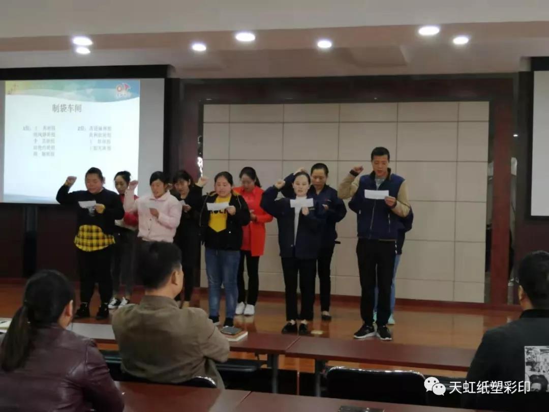 生產(chǎn)部印刷、復(fù)合、制袋等各班組進(jìn)行了PK兌現(xiàn),生產(chǎn)部就完成2019年生產(chǎn)目標(biāo)進(jìn)行了公眾承諾,他們士氣高昂,信心百倍,勢必達(dá)成全年生產(chǎn)經(jīng)營目標(biāo)。