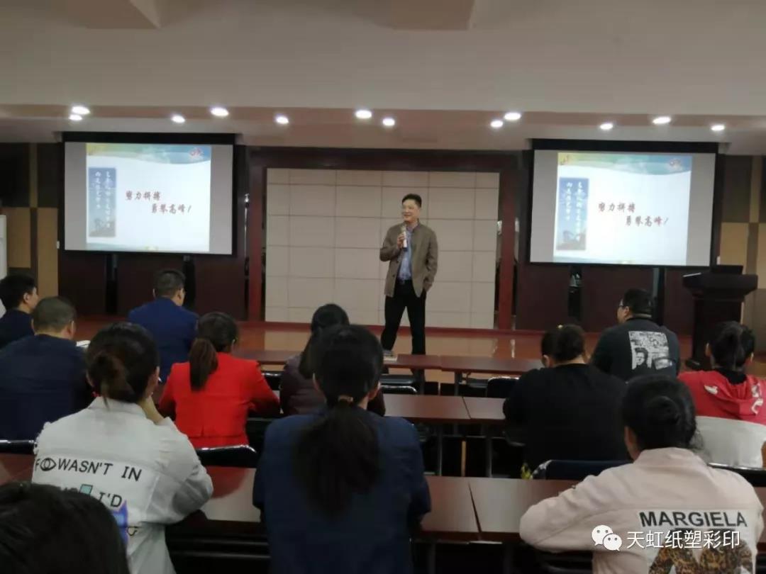 金秋十月,丹桂飄香。為振奮人心,鼓舞士氣,激發(fā)斗志,向第四季度及全年生產(chǎn)經(jīng)營目標(biāo)沖刺。10月28日上午,天虹公司舉行了季度PK總結(jié)大會。公司董事長陳志浩、總經(jīng)理高銀旺出席大會。